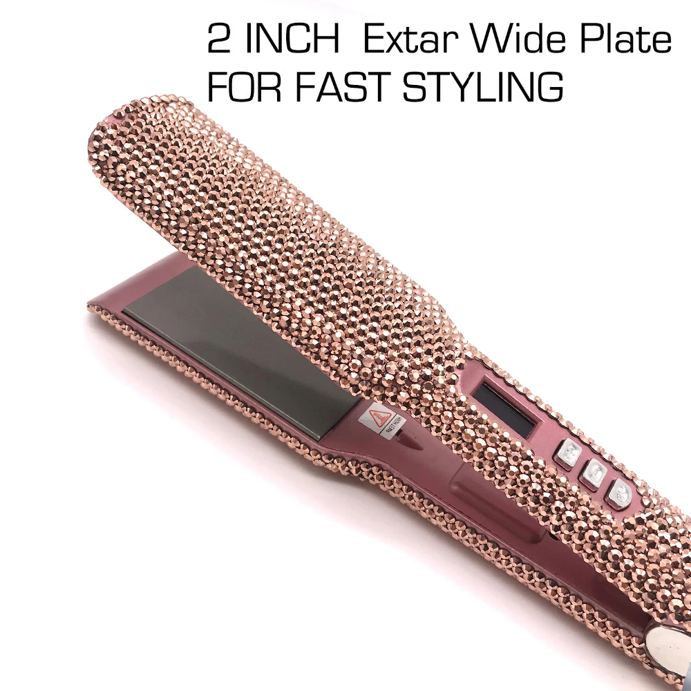 Hair Straightener Plancha Para Cabello 2 Inch Flat Iron with Rhinestones Professional Titanium Straightener Iron Heat-up 480℉