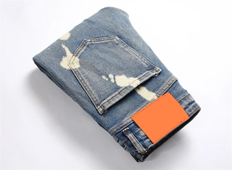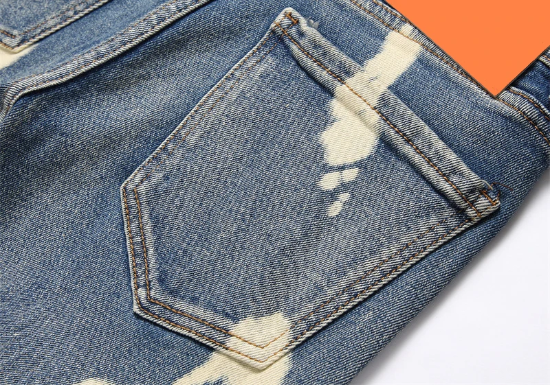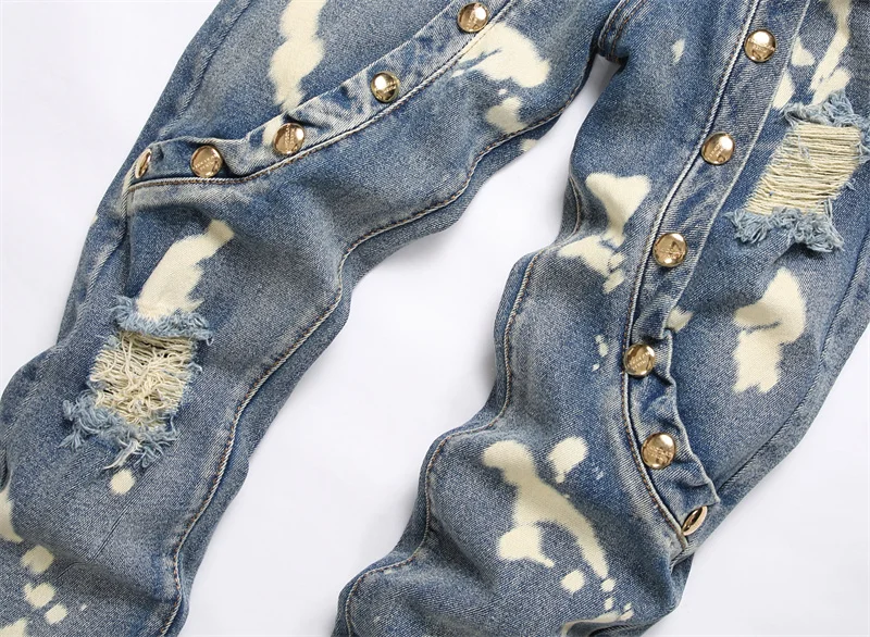 Fashion Ripped Stitching Rivet Jeans Blue Vintage