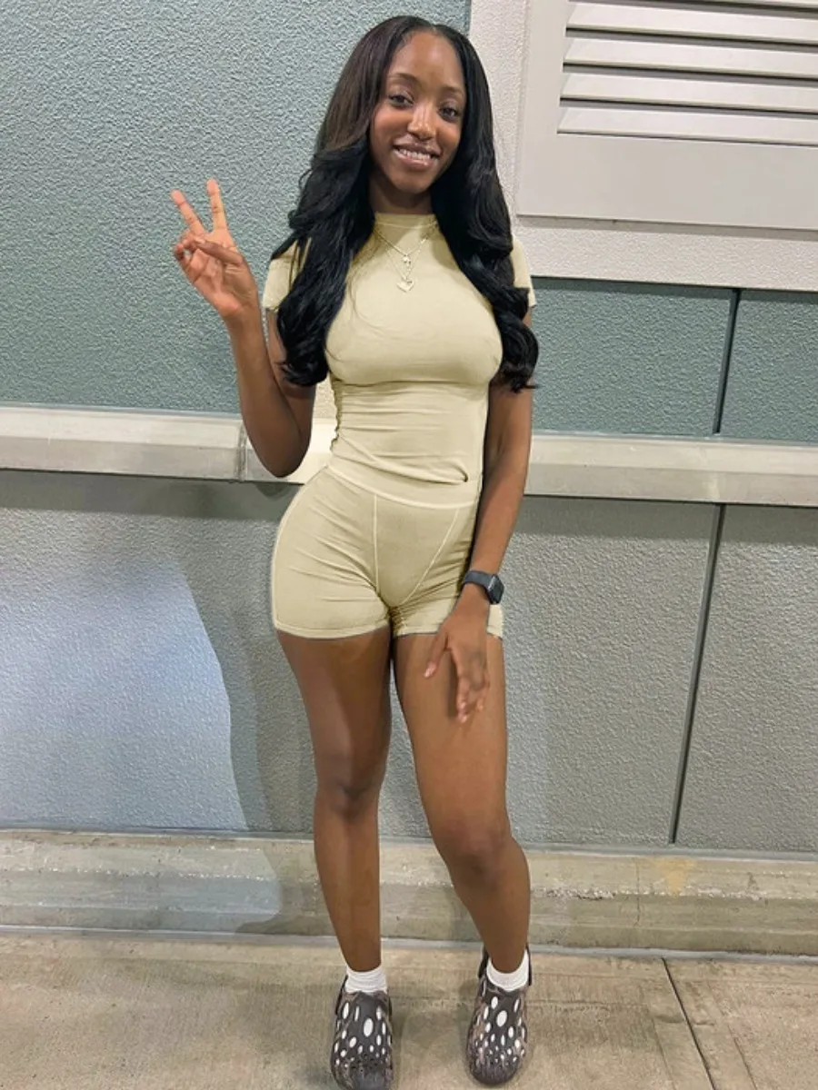 SEXY Two-piece Rib Knit Stretchy Skinny Shorts Set
